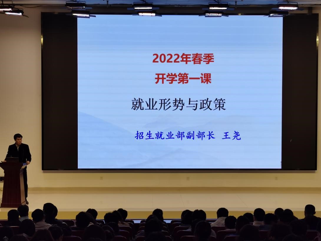 招生就业部王尧副部长以当前就业形势与政策为主题,细致地分析了国家的就业政策和本年度大学生就业形势,并用数据和实例为同学们介绍了当前的就业现状,号召毕业生拓宽就业思路,关注各方资源,合理定位工作期望,积极提高求职技能,做好充分的求职准备。同时告诫低年级学生不要沉迷玩乐,把握住当下的学习时光,缩小现实与理想差距,做好自己未来的人生规划,做到在思想上目标明确、在行动上一以贯之。