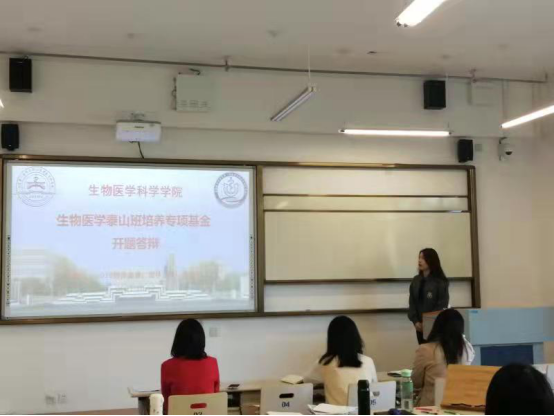 自生物医学泰山班组建一年多来,同学们在各自科研导师课题组进行了系统的科研训练,导师们为每位学生设置了独立的科研课题。经过前期准备,学生分别从项目背景、研究目的、研究内容与进度安排、拟解决的问题和预期成果等方面进行了汇报,评审组从课题的科学性、创新性、可行性等方面进行了针对性的指导,并提出了中肯的建议。