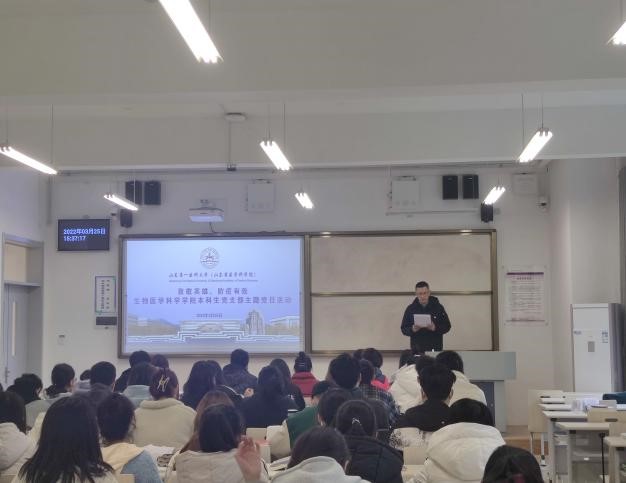 3月24日入党积极分子培训班开班仪式及3月25日教工党支部与2021级生物技术2班“领航工程”活动上,党委书记潘继红与同学们一同学习白晓卉同志的英雄事迹,号召同学们以白晓卉同志为榜样,深入学习她对党忠诚、不负人民的赤诚情怀;生命至上、护佑生命的医者仁心;恪尽职守、精益求精的职业操守;迎难而上、甘于奉献的优秀品格;生命不息、奋斗不止的价值追求。