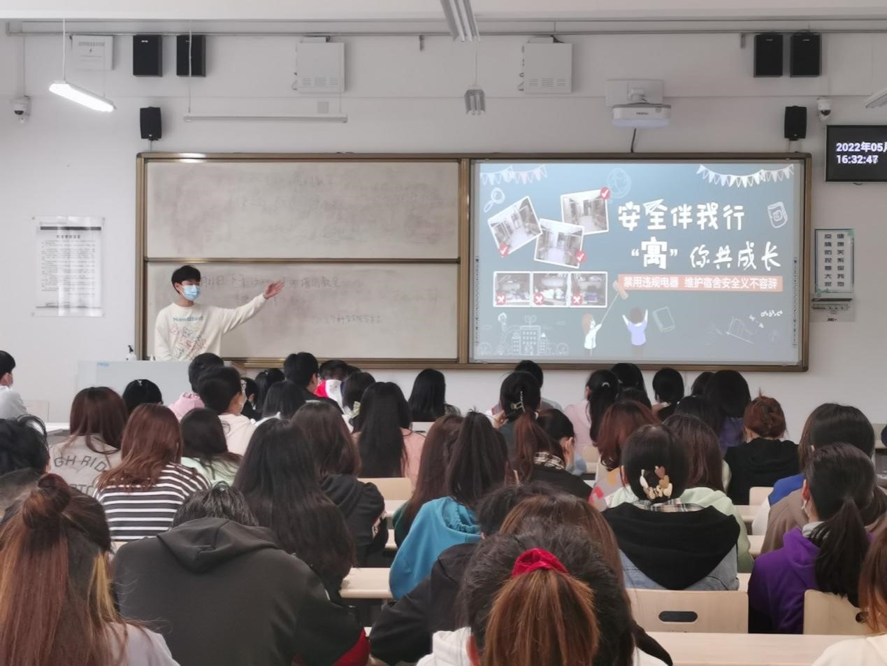 演习结束后,学院学工办又组织学生召开主题为“安全伴我行,寓你共成长”公寓安全座谈会。学生会生活部干事向同学们展示了禁用违规电器种类,讲解了禁养宠物等多项公寓安全举措。随后,同学们共同观看了学院自主拍摄的宿舍安全微电影,进一步加深了对宿舍安全的认识。