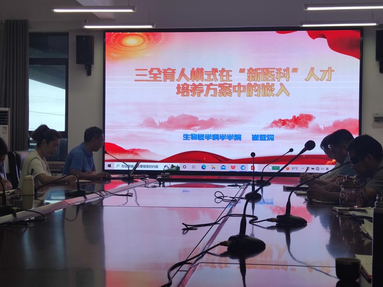 学院常务副院长崔亚洲做了题为《三全育人模式在“新医科”人才培养方案中的嵌入》的党课,紧密结合学院育人工作实际,深入分析了学院在三全育人方面所做的工作,指出领航工程是三全育人人才培养模式的生动体现;同时深刻剖析了学院面临的困境,通过对比其他高校的三全育人的理念,围绕探索符合新时代需求的新医科人才培养体系、做好医学教育改革做了深入细致的阐述,为下一步学院深化新医科三全育人模式改革擘画了蓝图。