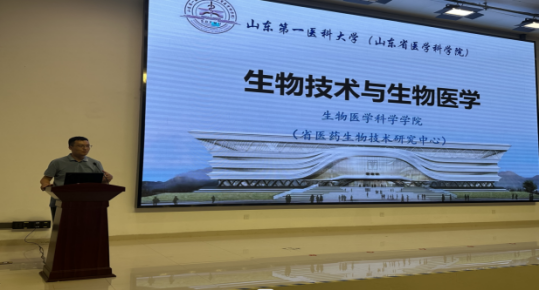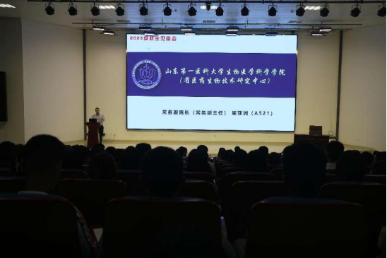 8月28日晚,学院领导班子举行了新生见面会,院长崔亚洲、党委书记潘继红和副院长王林与2023届新生见面并对新生进行了入学教育。崔亚洲院长从学院中心概况、发展规划、科教融合、师资队伍、教育教学、科学研究和社会服务七个方面对学院目前的情况进行了详尽介绍。他指出:“学院拥有全博士的高水平师资队伍和完善的本硕博全过程人才培养体系,拥有全国较稀有的学科专业优势和小班化、导师制、国际化的“泰山班”拔尖人才培养模式,已配置3个省部级创新平台和多组学的实验平台,已承担完成和在研多项国家级的课题项目,为本科生教学和科研创造了良好的环境,力求要为社会提供医学+生物”复合型创新人才和生物治疗应用的研究型人才。同时,他还鼓励学生在未来的四年本科生活中应多参加大学生的创新创业大赛,提升自己的科研实力,为以后的工作和更高层次的学业深造奠定扎实基础。