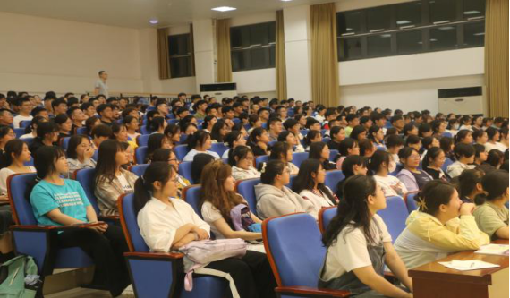 8月29日晚,校医院院长张萍为学院新生进行了大学生健康教育。向新生
