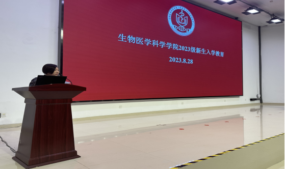 学院王林副院长为新生们详细介绍了学院的生物医学科学和生物技术两个专业:从培养目标、培养情况、培养特色和工作规划四个方面详细展开阐述了两个专业的特点、专业要求、专业培养状况和培养成效等内容,并勉励同学们要胸怀梦想,脚踏实地的进行大学四年的本科学习,早日成为像“屠呦呦”般的科学家,为祖国的生物技术和生物医学发展贡献自己的力量。